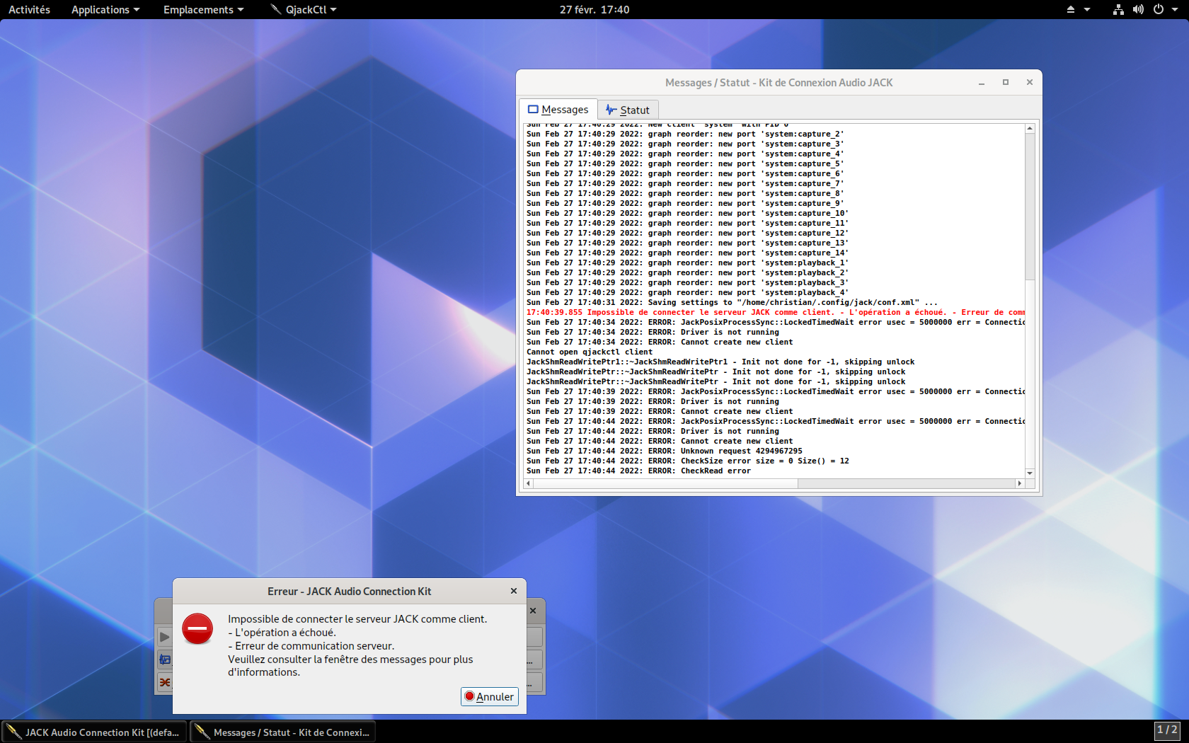 jack se plante au démarage [abandoné]