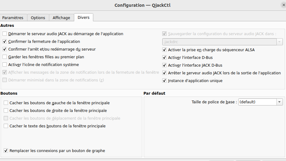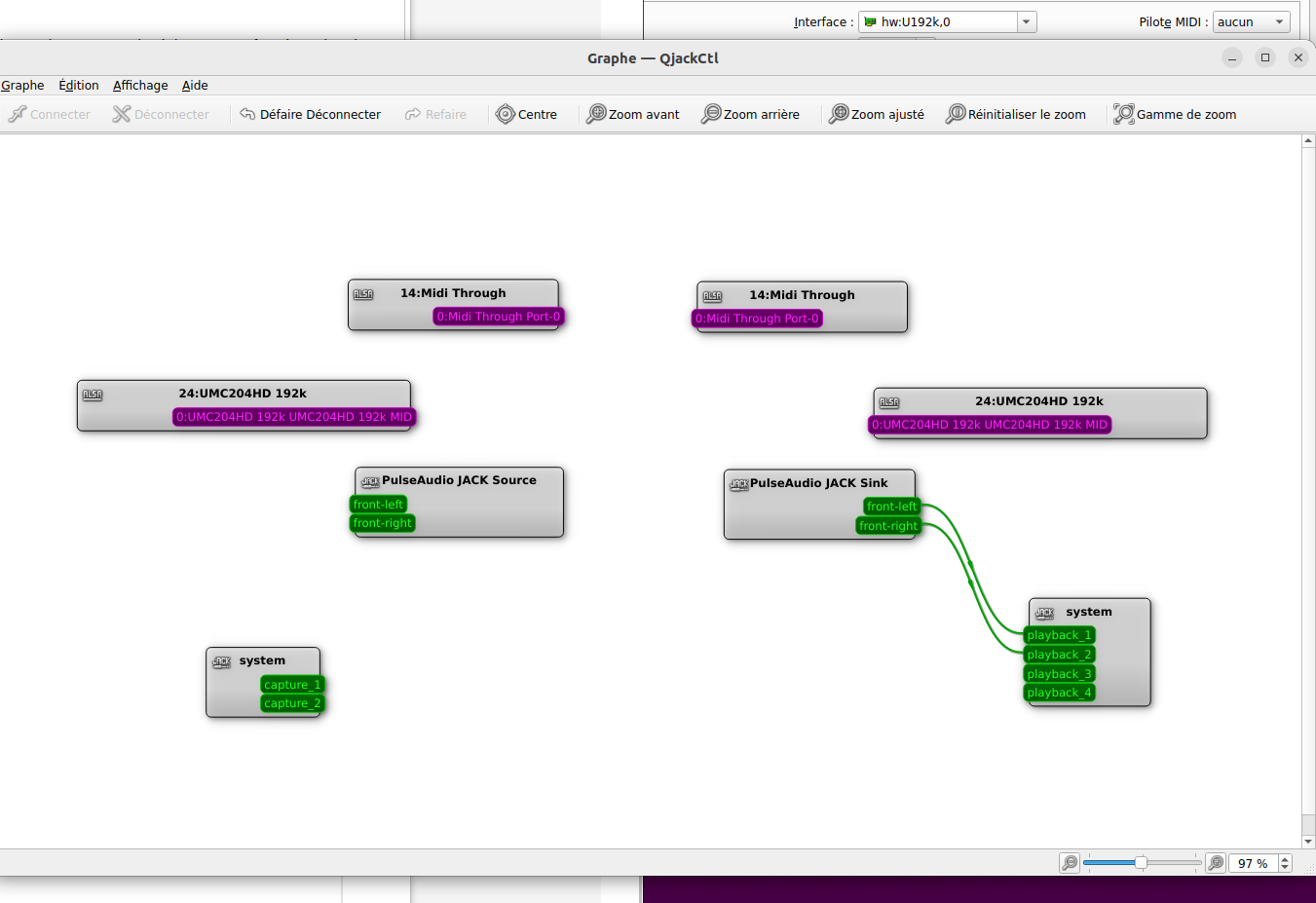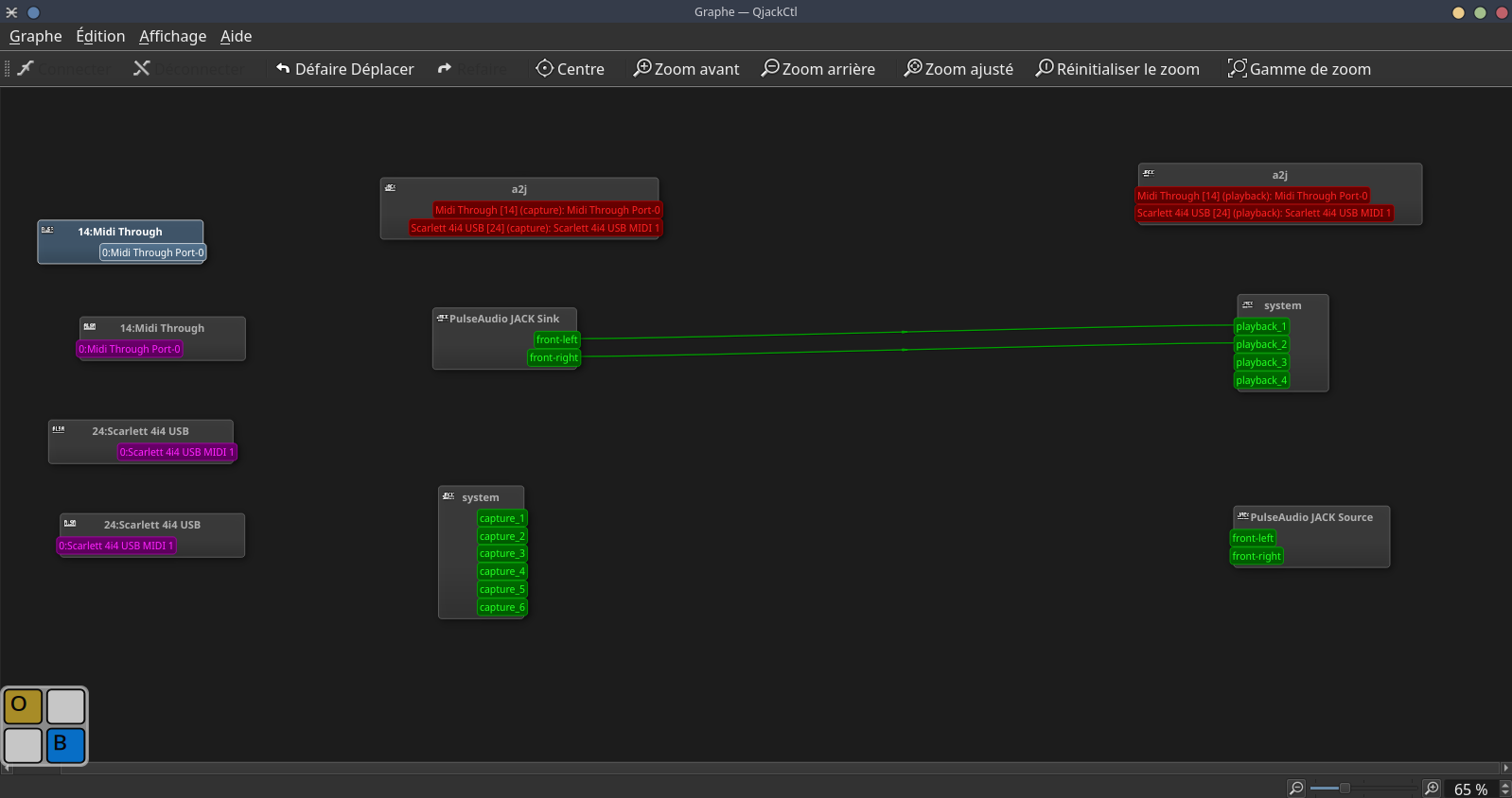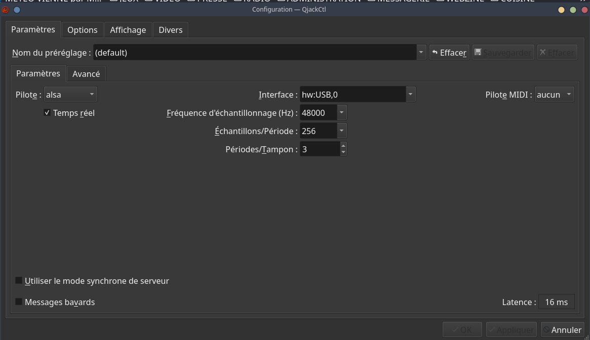J'ai installé Jack et Qjackctl. J'ai essayé de les configurer en suivant les étapes indiquées sur ce site. (cf. images ci-dessous)