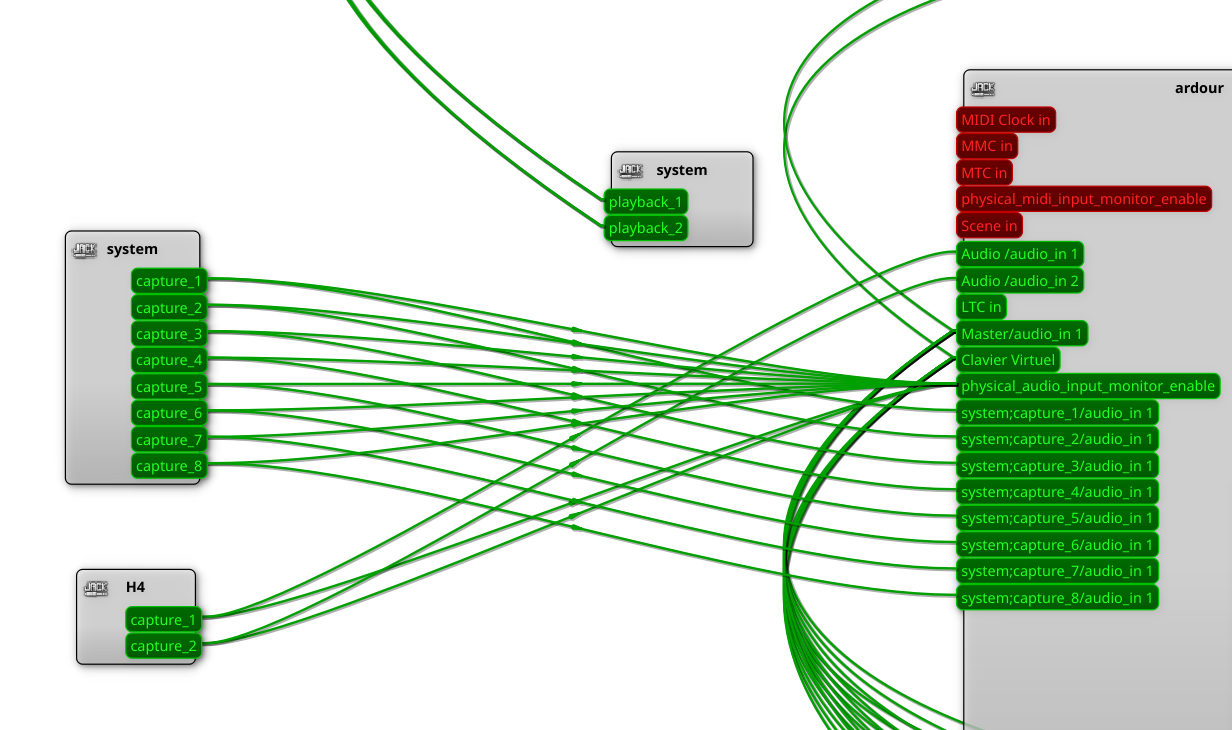Mais dans le Graphe de Jack il n'y est pas donc tintin pour faire les connexions avec mes pistes Ardour