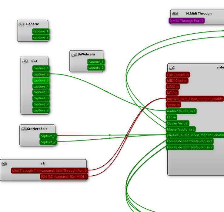 Avec ces derniers éléments ça fonctionne bien j'ai mes entrées JACK disponibles !