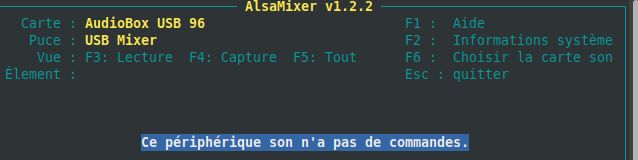 - alsamixer : quand je fais F6 j'ai le message suivant
