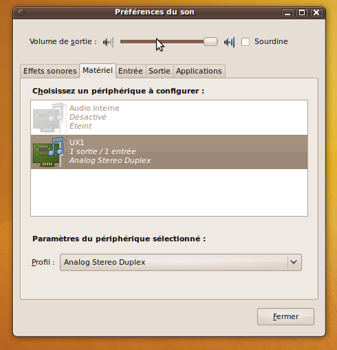 avec tous c'est réglage j'obtien bien un son en sortie sur la carte son externe UX1