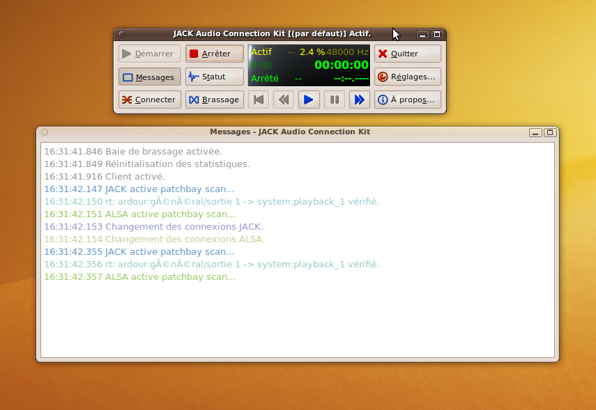 Ensuite j'utilise Ardour GTK2 couplé avec JACK Control pour le gestion .
