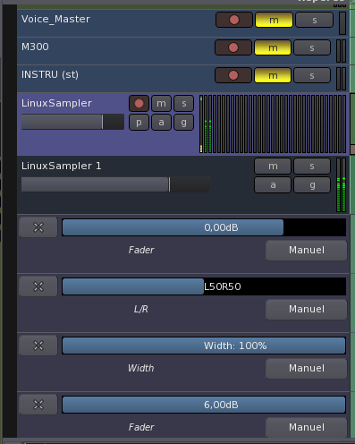 - Je charge un instrument dans linuxsampler que je mets sur le canal 1 (ou tous les canaux, ça dépend)