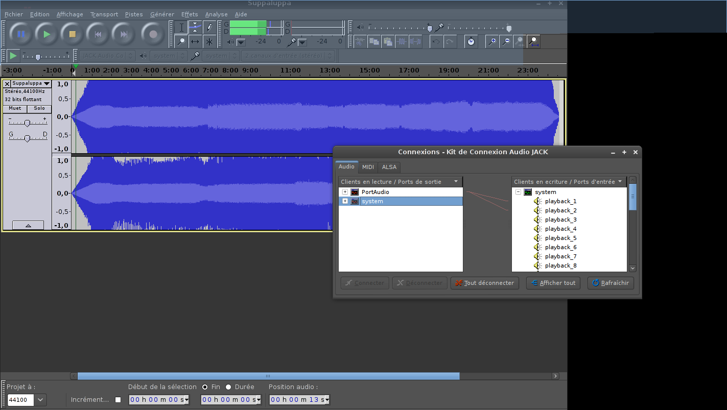je peux "voire" ma carte en entrée et en sortie dans Jack et dans audacity.