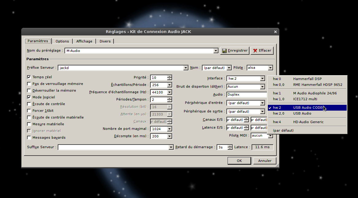 je peux "voire" ma carte en entrée et en sortie dans Jack et dans audacity.