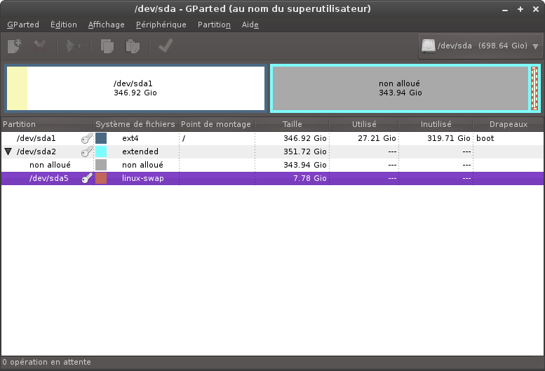Sinon si tu veux tout reprendre depuis Zéro tu télécharge la dernière debian 8 et tu le boot en live pour te servir de Gparted pour configurer tes partitions.