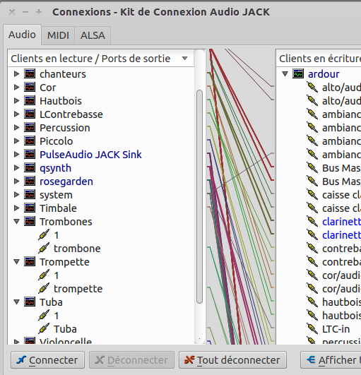 "Pour voir", j'ai mis tous mes périphériques audio à un seul port et j'ai nommé le port avec le nom de l'instrument (c'est le même nom que le périphérique, mais avec une majuscule pour le périphérique et une minuscule pour le port).
