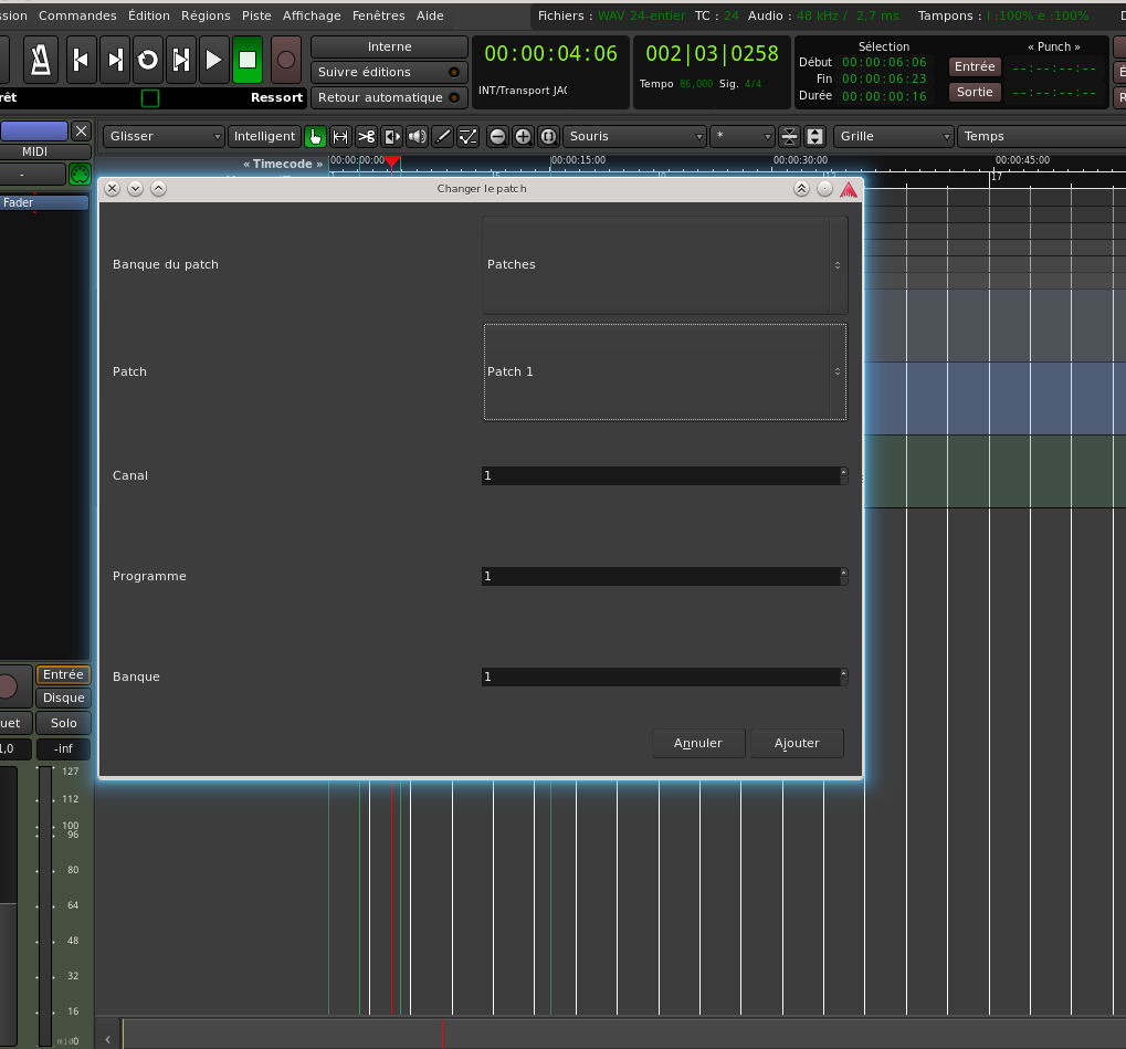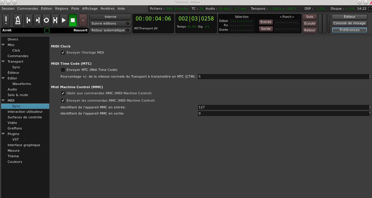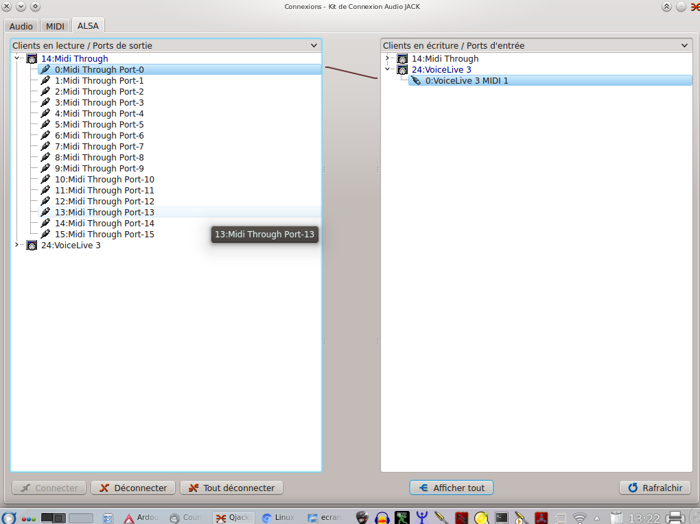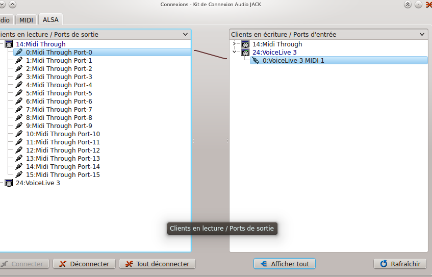 Je parviens donc à envoyer de la musique via ardour dans la machine. Restera à tester si la fonction harmonies vocales fonctionne également.