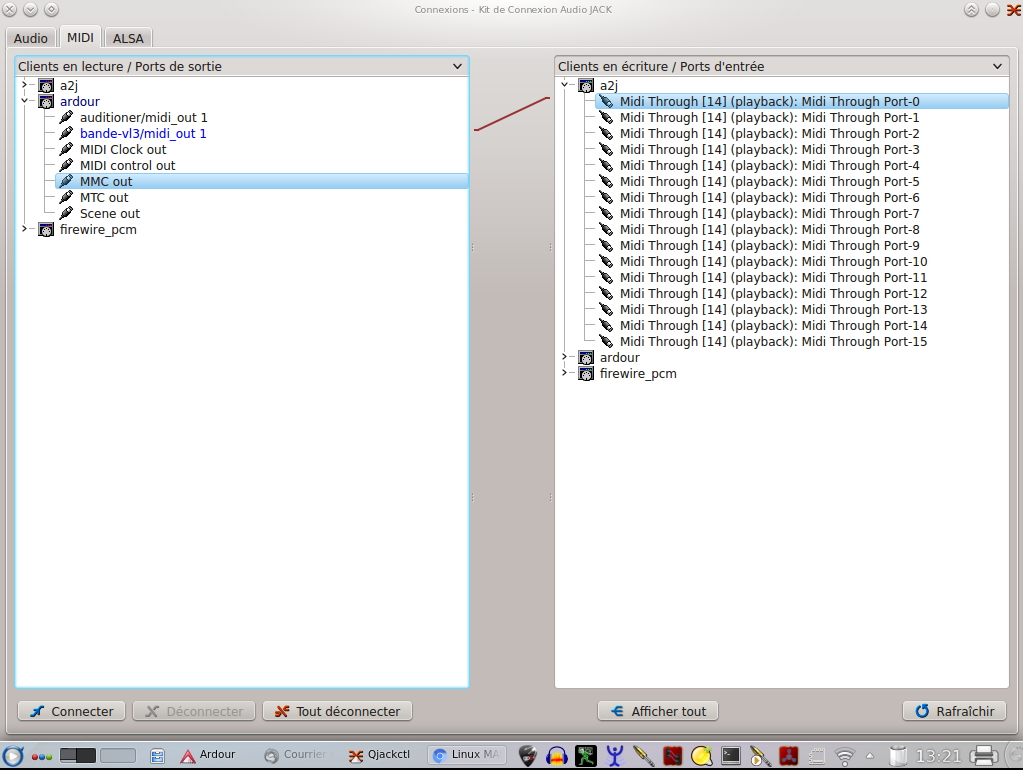 Je parviens donc à envoyer de la musique via ardour dans la machine. Restera à tester si la fonction harmonies vocales fonctionne également.