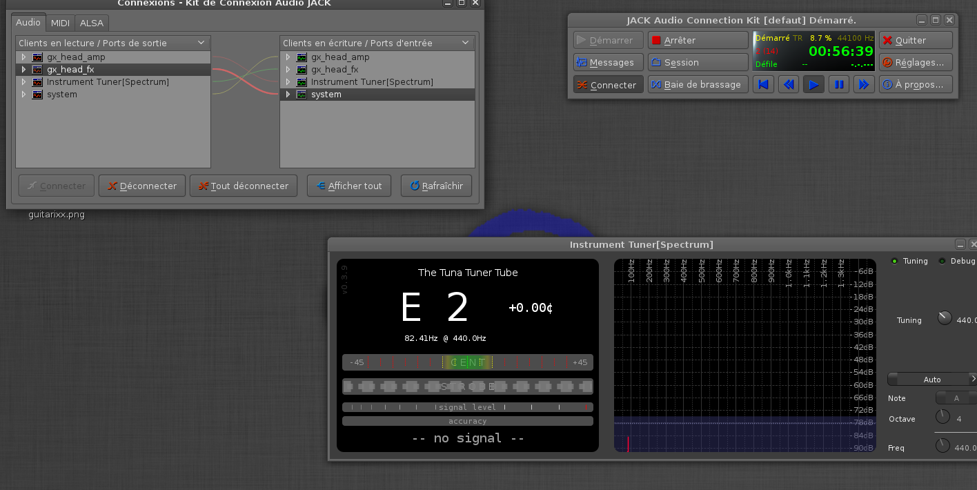 Dans un autre thread tu disais avoir essayé d' autres accordeurs sans succès. Je suppose que les connexions étaient bien faites dans Jack?