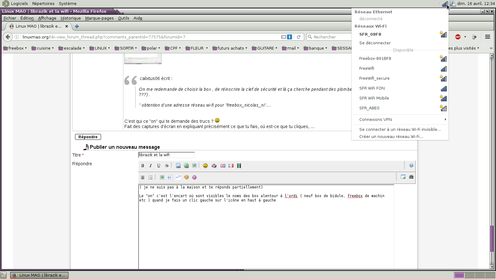 J'ai installé librazik sur mon nouvel ordi en suivant le guide du site de librazic. La wifi fonctionne pour l'installation. Une fois la clef usb enlevé je redémarre. On me redemande de choisir la box , de réinscrire la clef de sécurité et là ça cherche pendant des plombes sans valider la connection ( ???) .