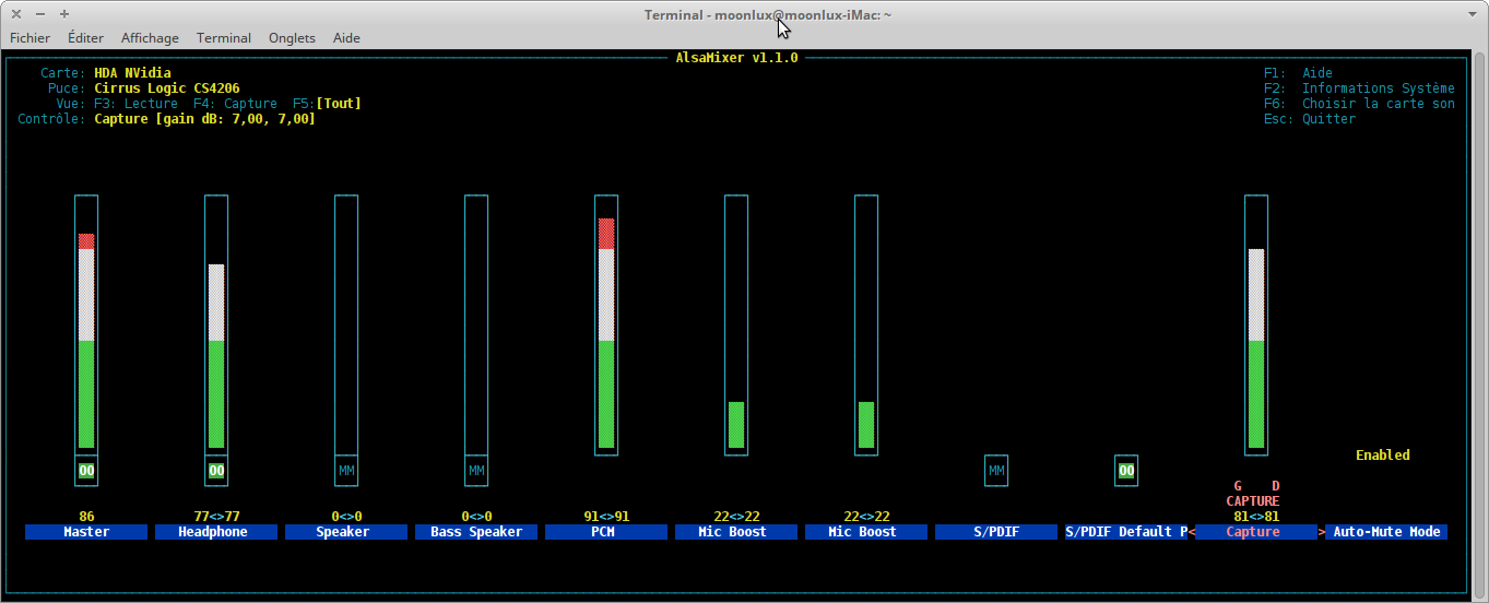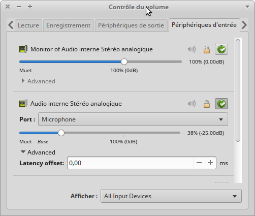 Question configuration du son par contre je me heurte à un soucis. Mon Imac possède une sortie son 'jack) et une entrée son (jack) bien distinctes (pas sur la même connectique). Il dispose aussi d'une webcam intégrée avec micro. Sous linux dans les réglages de pulse audio je n'arrive pas à voir mon entrée son.. je n'ai que le micro de la webcam qui apparaît.