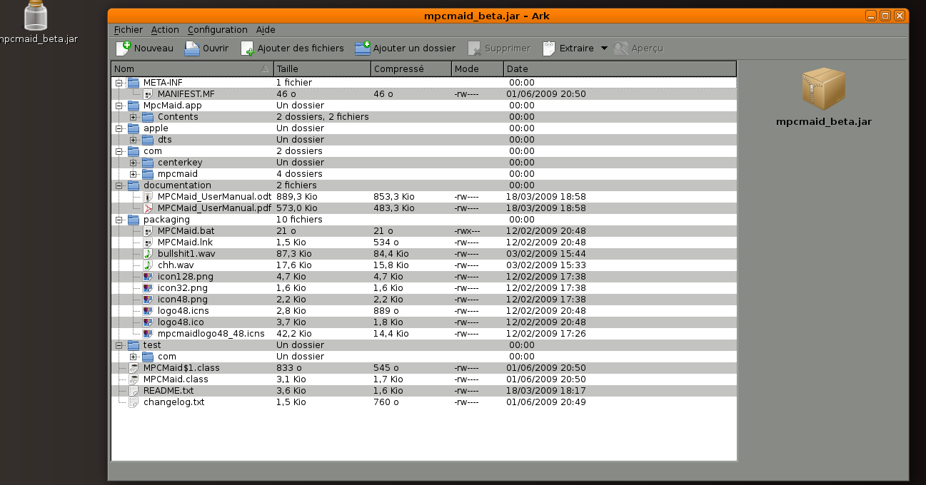 Le problème surtout c'est que je télécharge bien la source mpcmaid_beta.jar, je l'ouvre et là je ne sais pas quoi extraire?