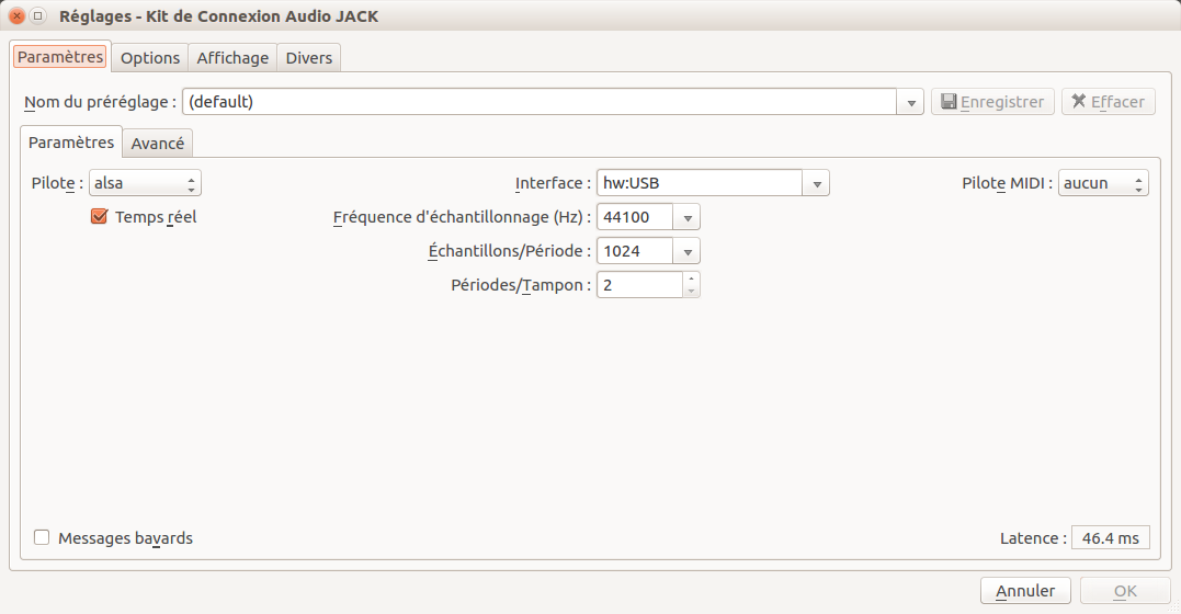 aplay -l **** Liste des Périphériques Matériels PLAYBACK **** carte 0: PCH [HDA Intel PCH], périphérique 0: ALC887-VD Analog [ALC887-VD Analog] Sous-périphériques: 1/1 Sous-périphérique #0: subdevice #0 carte 0: PCH [HDA Intel PCH], périphérique 1: ALC887-VD Digital [ALC887-VD Digital] Sous-périphériques: 1/1 Sous-périphérique #0: subdevice #0 carte 0: PCH [HDA Intel PCH], périphérique 3: HDMI 0 [HDMI 0] Sous-périphériques: 1/1 Sous-périphérique #0: subdevice #0 carte 0: PCH [HDA Intel PCH], périphérique 7: HDMI 1 [HDMI 1] Sous-périphériques: 1/1 Sous-périphérique #0: subdevice #0 carte 1: USB [Scarlett 18i8 USB], périphérique 0: USB Audio [USB Audio] Sous-périphériques: 0/1 Sous-périphérique #0: subdevice #0
