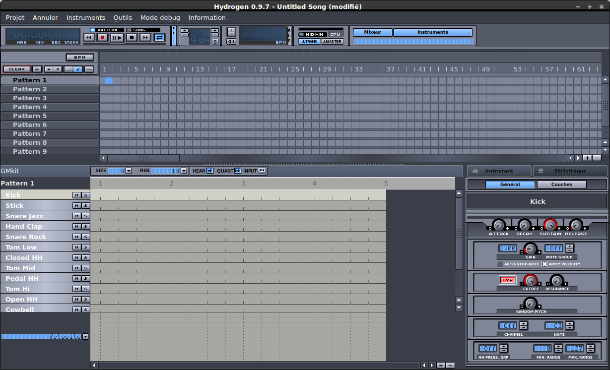 - pour les histoires de compatibilité entre kits de batterie Hydrogen, les motifs doivent être fait avec le GMkit, ce qui leur permettra d'être compatibles avec tous les kits de batterie de norme GM MIDI
