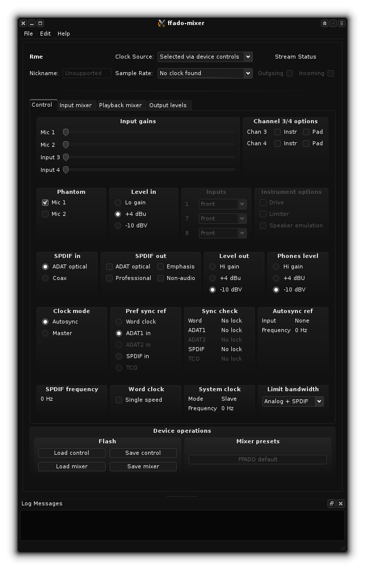 J'ai donc lancé FFado, qui a permis de faire le lien avec ma carte puis Jack et ai tenté de le paramétrer en firewire en mettant hw:0 dans la zone Device/Interface