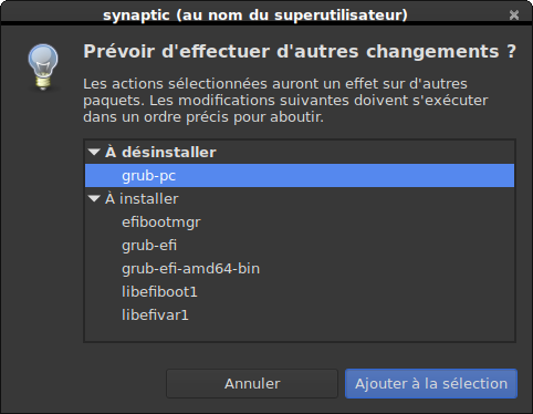 -----il veut donc désinstaller grub-efi-amd64 (et libavcodec57 mais ça ... ça va).