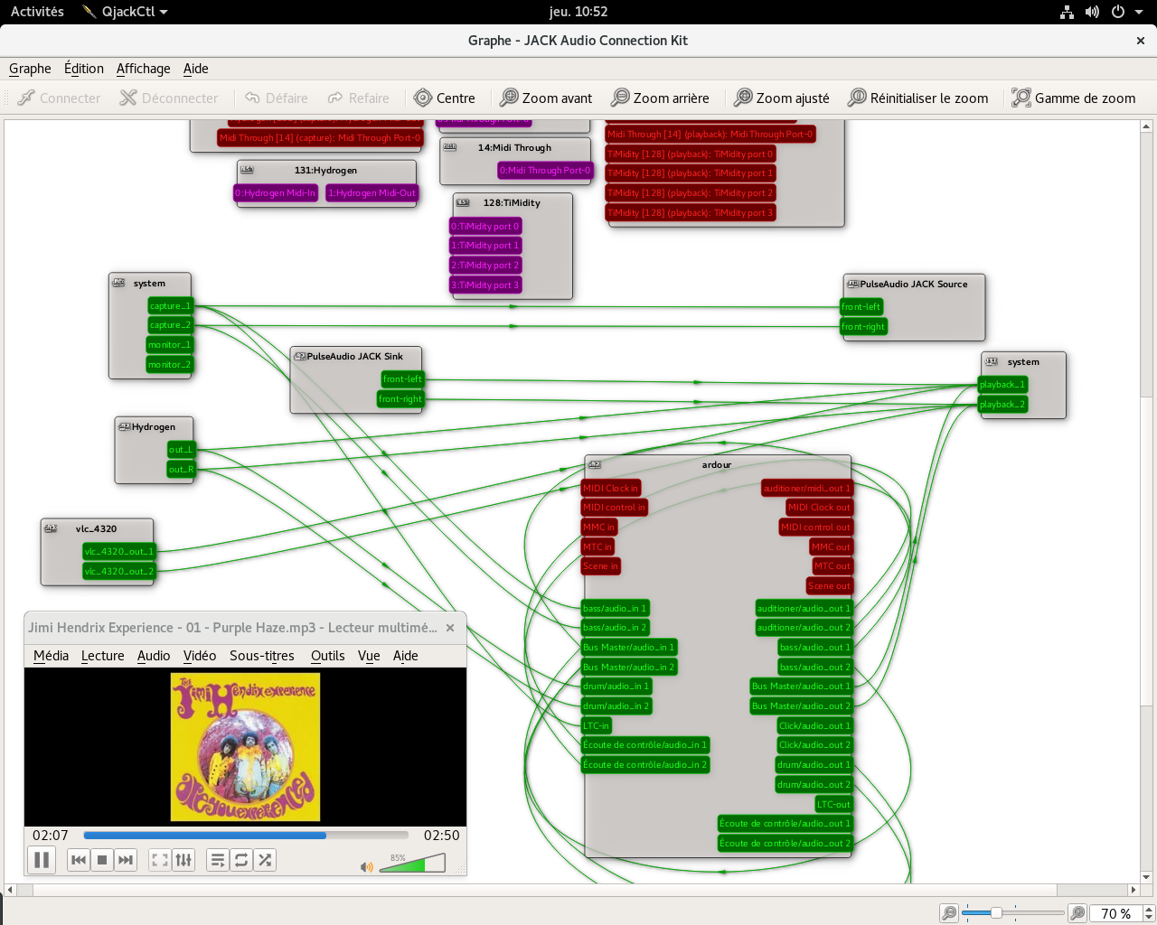 Concernant le Graphe, auditioner et écoute de contrôle j'ai rien compris et les posts sur divers forums anglais ou français ne m'ont pas durablement éclairé. À propos, si je décoche la case "écoute de contrôle" dans Qjackctl, ça m'enlève ces connecteurs ? D'ailleurs, à quoi et quand me serviraient-ils ?