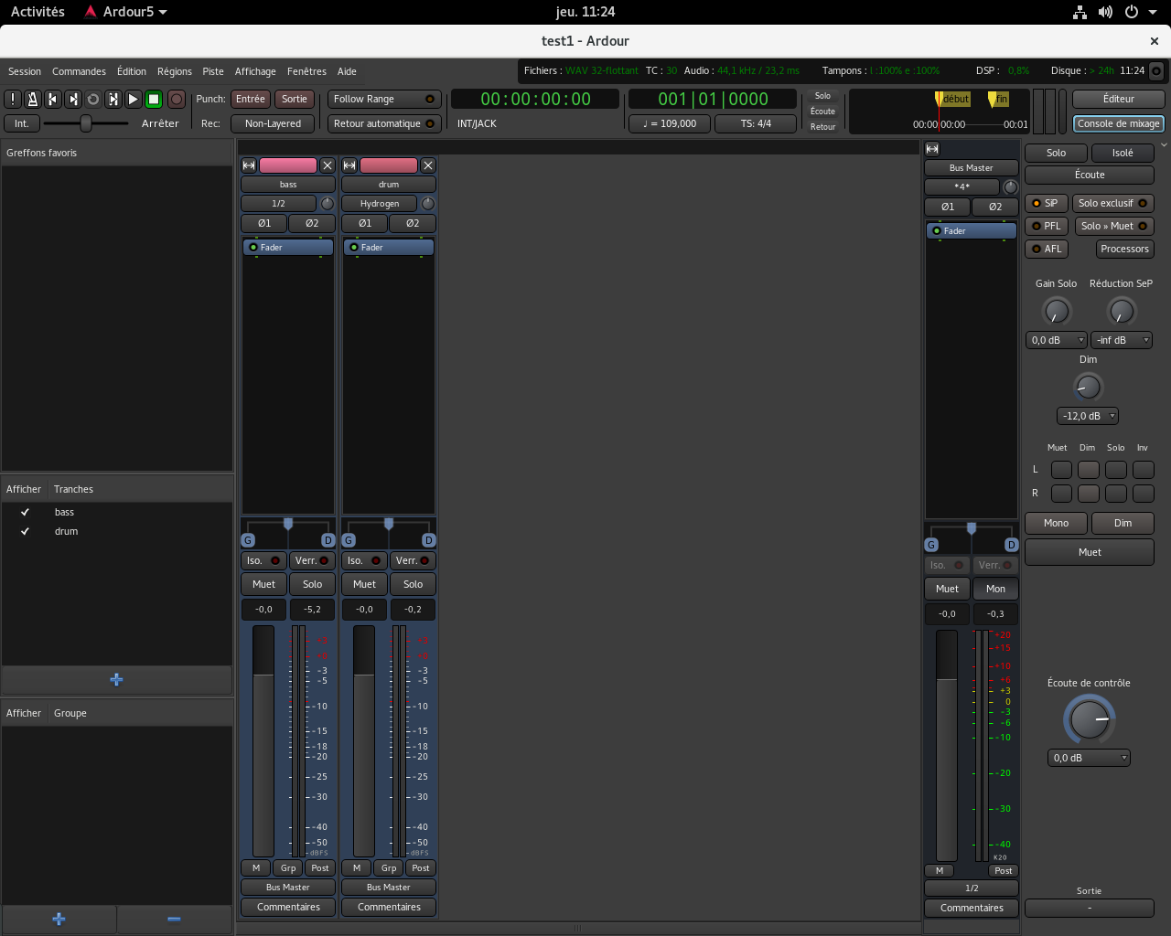 Comme pas assez, j'ai donc double-clické sur la piste bass enregistrée pour modifier le niveau, ça le fait beaucoup mieux. C'est le seul moyen ou j'ai loupé un truc dans ma config son de base ?
