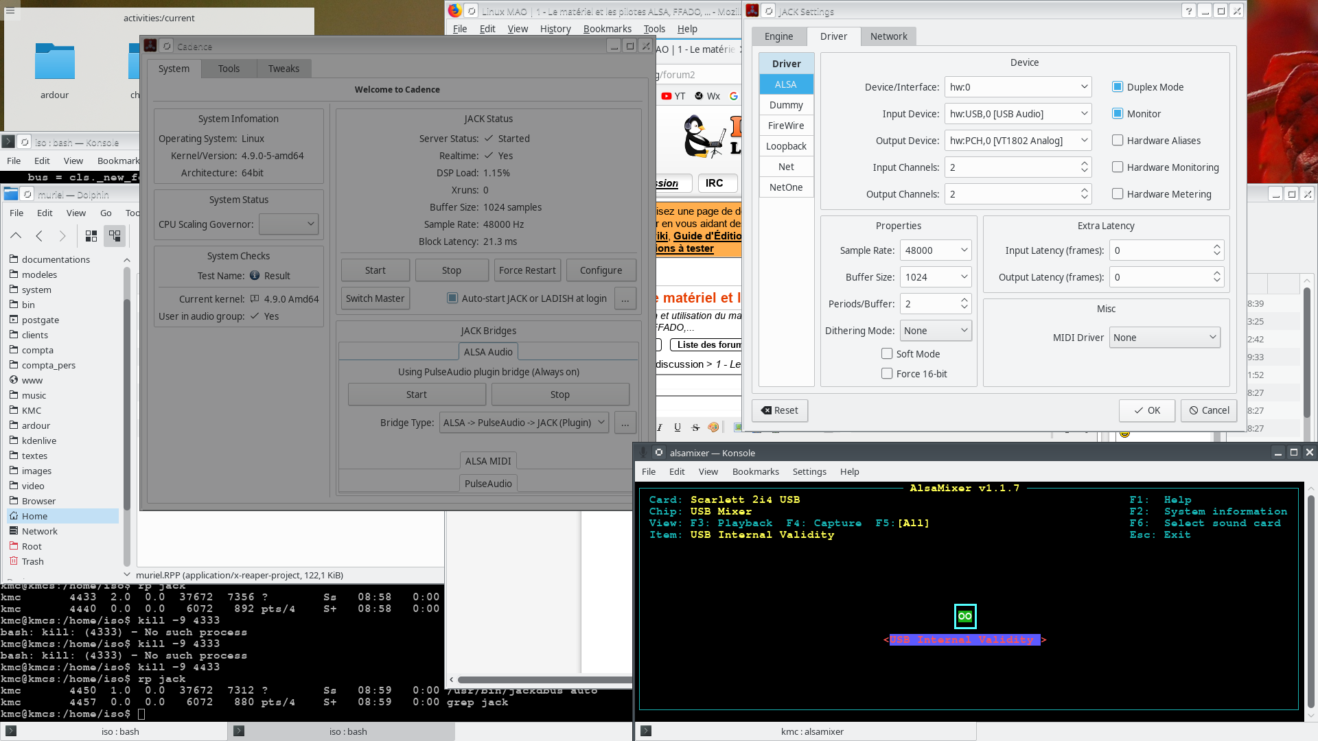 Je viens d'acheter la Focusrite scarlett 2i4 😀 mais ça marche po💡 sur ma Debian 9/Jack bridge/cadence