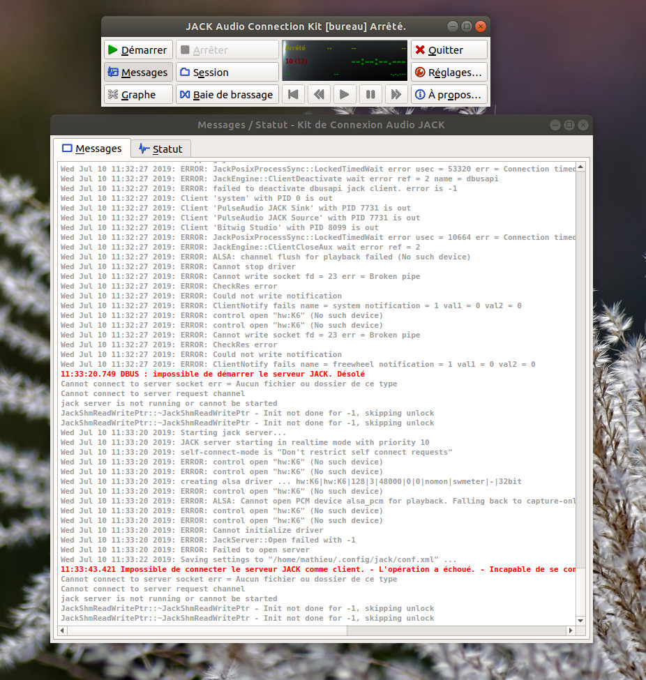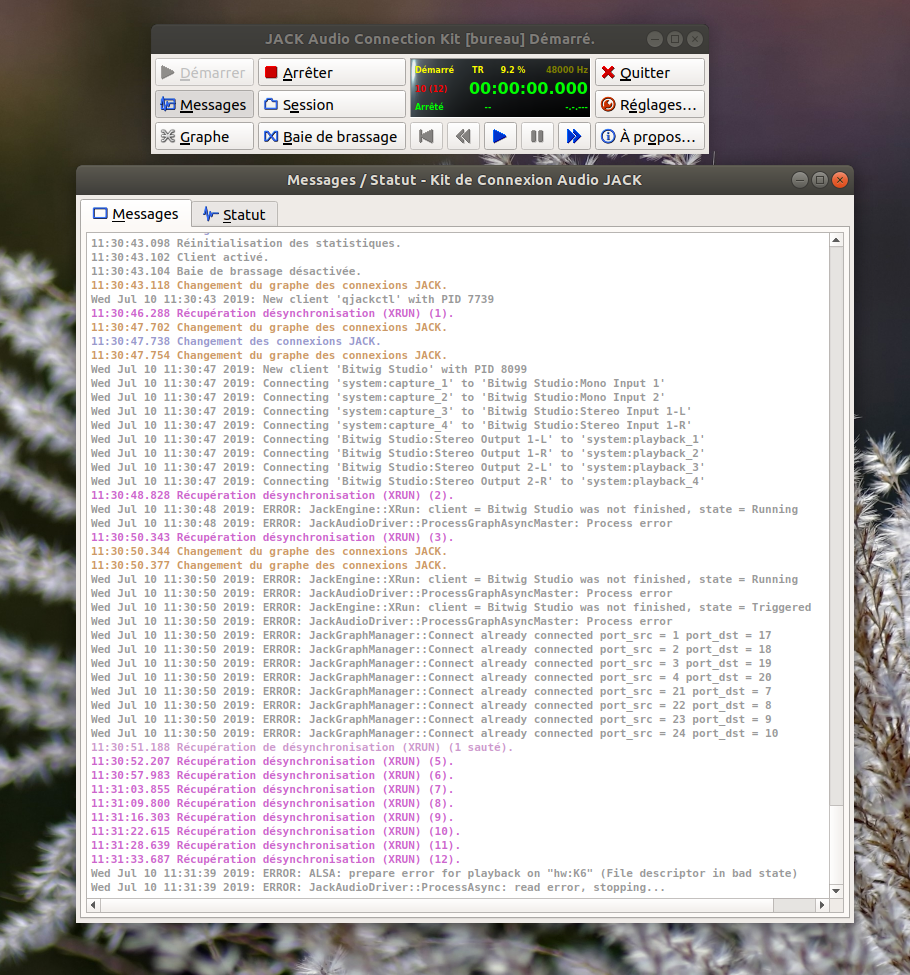 Le tout tourne sous Bitwig Studio, avec Jack comme serveur audio, et pulseaudio routé dans Jack.