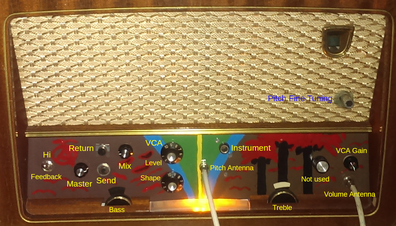 Pour ce développement, je suis parti d'une vieille radio à tubes philips suédoise. Il y a à peu près toutes les pièces nécessaire pour faire un theremin dans une telle radio. Mon stock de pièces rares récupérées au fil des ans a complété les pièces manquantes. J'ai commencé par démonter complètement la radio et je l'ai remontée étage par étage, en commençant par l'ampli. Le transfo de sortie d'origine de la radio est d'excellent qualité, 2 fois plus gros que celui d'un Fender Champ pour la même puissance, ce qui explique en grande partie le fait que cet ampli est le meilleur de ceux que je possède.