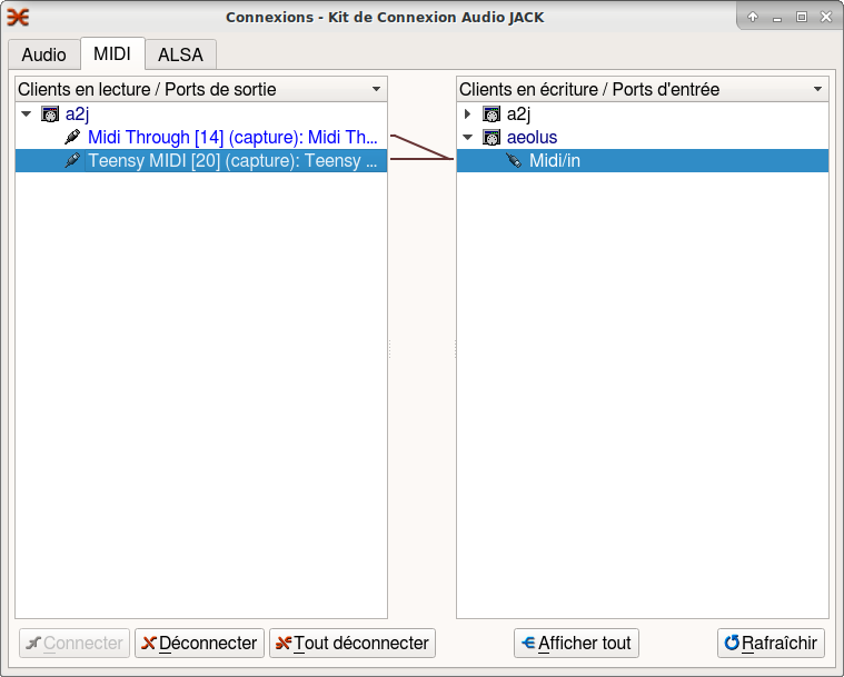 Par contre Aeolus ne fonctionne pas avec le pédalier mais ça marche avec un clavier virtuel JACK Keyboard.