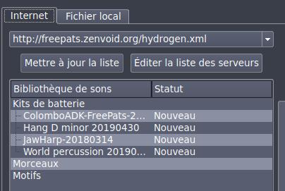 Envoyé par olinuxx le Lundi 09 mars 2020 18:54 Articles: 19661 Après un essai, j'ai la même chose ici. Le soucis est que l'adresse est : http://hydrogen-music.org/feeds/drumkit_list.php (pas de www). Par curiosité et pour pouvoir éventuellement corriger l'info, où avais-tu eu cette adresse avec www ?
