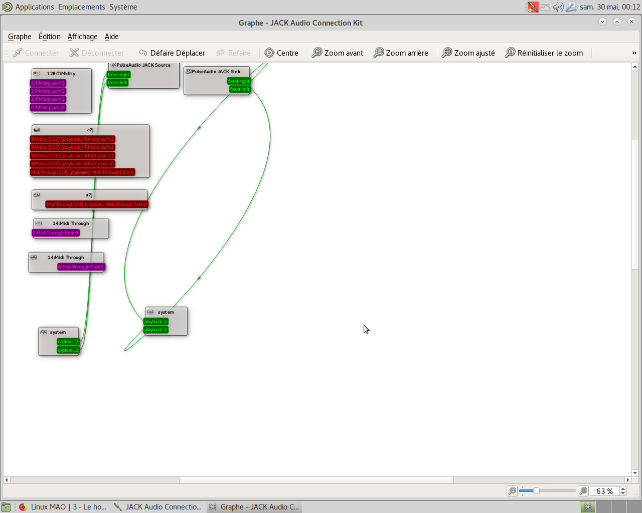 Envoyé par jujudusud le Mercredi 03 juin 2020 15:32 Alors alors ? C'est tout bon ? tu peux aussi ranger dans cette fenetre. les entrées à gauche, les sorties à droite ... par exemple. Avec le pont pulseaudio->Jack en haut :