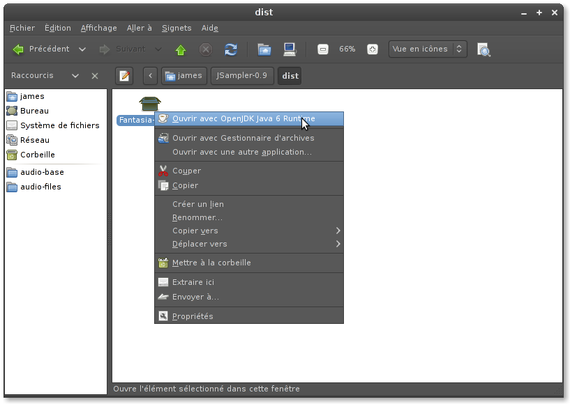 Un clic droit sur JS_Classic-0.9.jar ou Fantasia-0.9.jar -> Ouvrir avec OpenJDK Java 6 Runtime .