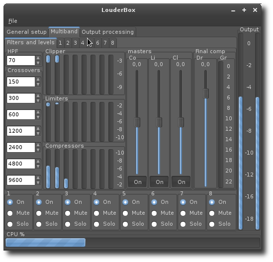 Louderbox est un processeur audio 8 bandes.