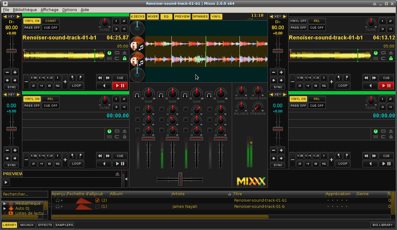 - lancement de Mixxx,