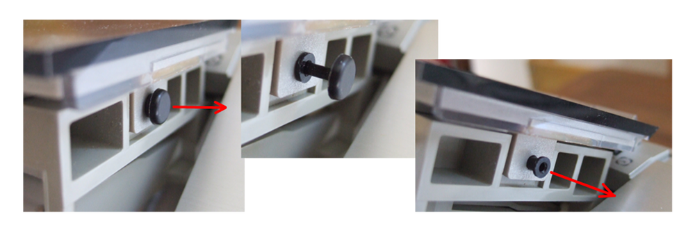 - Le premier levier (photo à gauche) doit être tourné ver l'extérieur pour dégager l'accès au filet qui va recevoir la vis.