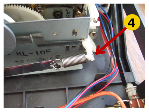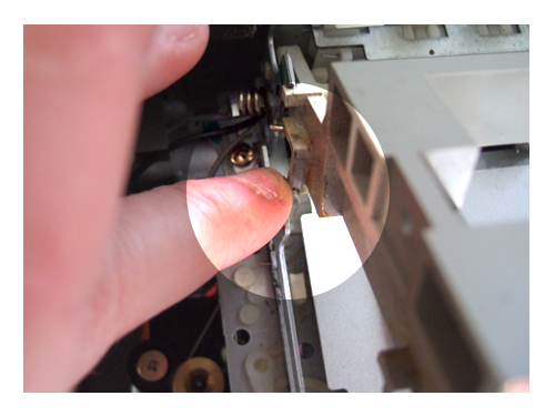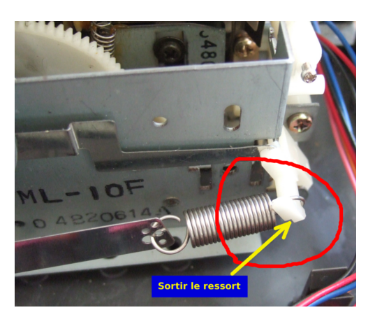 Retirer le ressort qui commande le contacteur lecture/enregistrement.