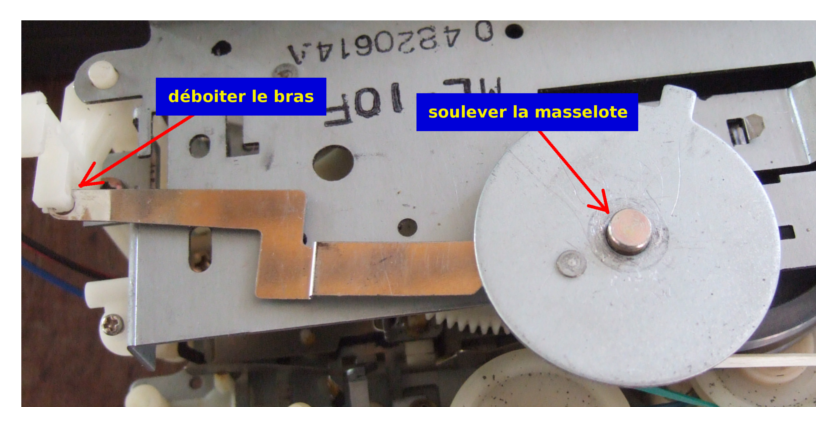 Le plot 1 nous obligent à tout démonter pour replacer la courroie plate d’entraînement de la bande qui lui passe de part et d'autre.