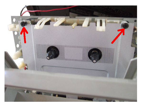 - Pour la plaque de fond, ce n'est pas le plus compliqué : ouvrir le volet positionner la plaque en l'insérant dans les ergots coté tête lecture/effacement et fixer les deux vis supérieures (revoir ici pour les photos).