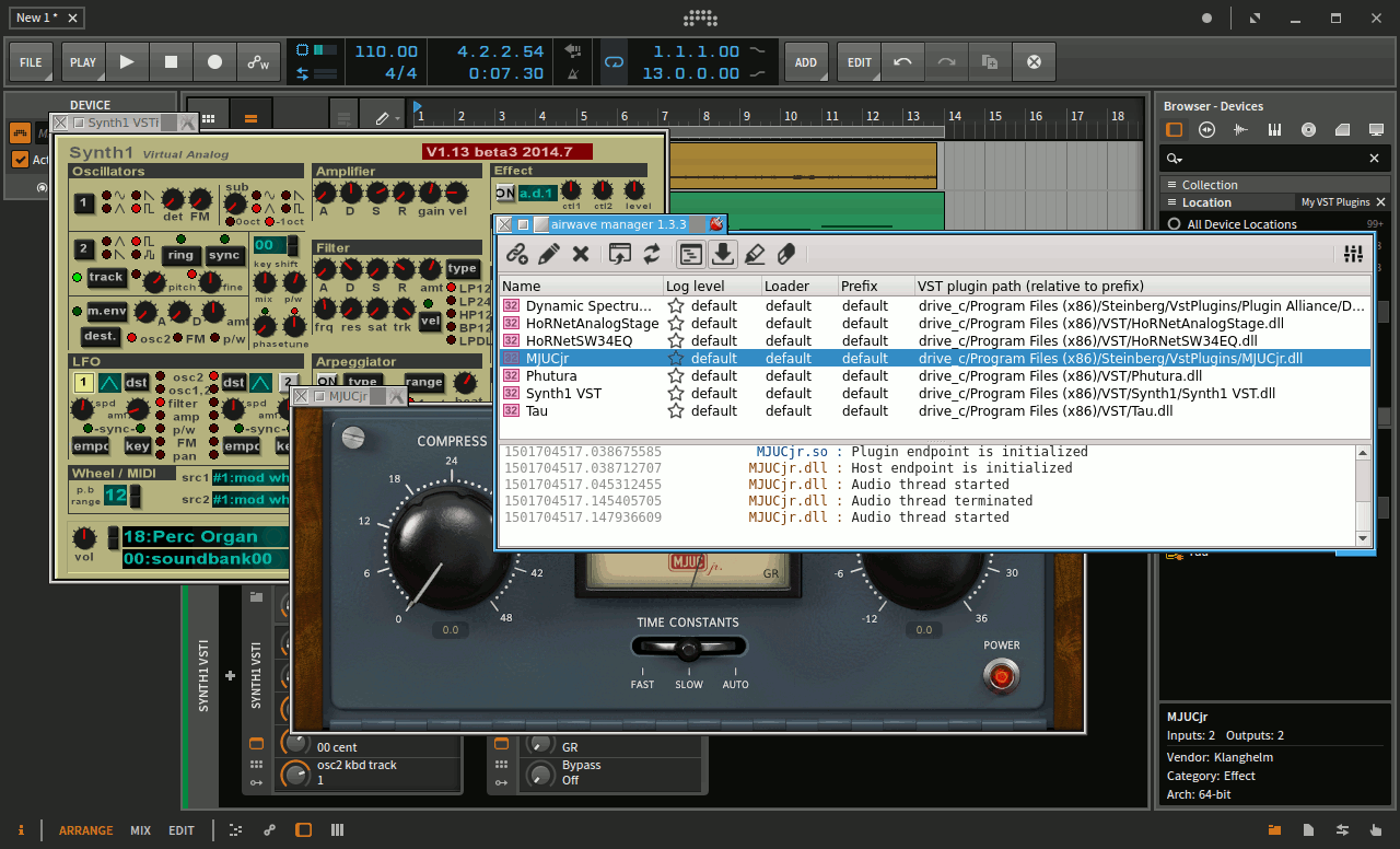 Airwave est un-pseudo hôte VST qui fait le lien entre des greffons VST installés sous Wine et un hôte Linux.