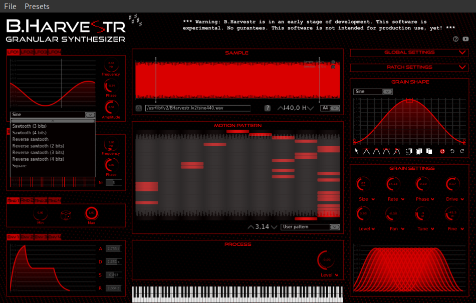 Bharvestr est un synthétiseur granulaire en greffon LV2.