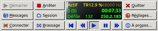 Dans la fenêtre du contrôleur JACK (QJackCtl) vous voyez dans la partie affichage en dessous de « Actif » (Started dans l'interface en anglais) deux nombres dont l'un est entre parenthèses qui sont initialisés au départ à 0.Ces chiffres sont verts tant qu'ils sont à 0 (0) et rouges sinon.