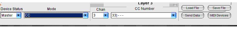 Dans cet exemple, on affecte le ControlChange 33 sur le Canal 3 à la touche sélectionnée.