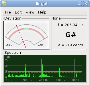 Lingot (LINGOT Is Not a Guitar-Only Tuner) est un accordeur précis, simple d'utilisation et hautement configurable. À l'origine conçu pour l'accord de guitare, il peut aussi être utilisé pour n'importe quel autre instrument. Il ressemble à un accordeur digital avec une jauge indiquant la différence avec la note la plus proche trouvé automatiquement. De plus, il est compatible Jack. |