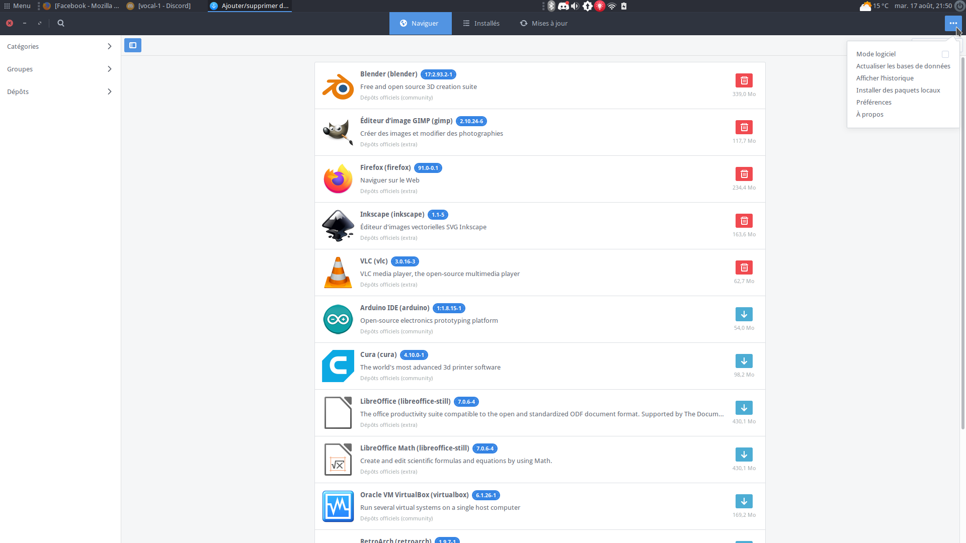Il existe aussi des utilitaires graphiques comme Pamac et Octopi qui sont un peu similaires à Synaptic, disons pour la fonction graphique.