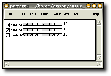 - Cliquez sur make et VIS (une nouvelle fenêtre avec une piste de bmd-sd apparait alors). Le bouton SW permet de "muter/demuter" le pattern.