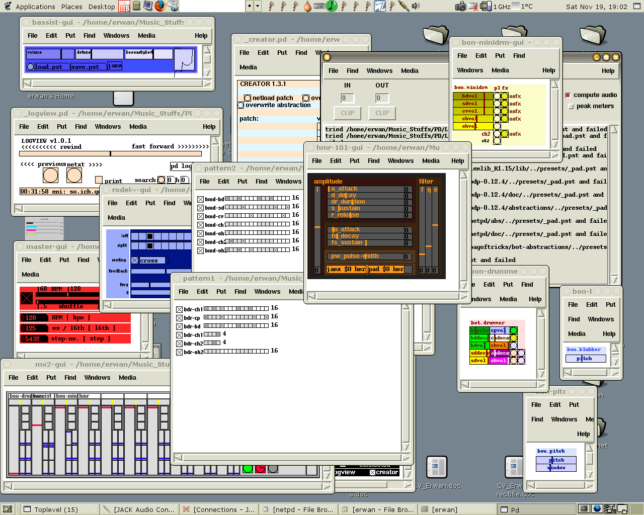 - Hmr est un synthétiseur qui est assez avancé et très agréable à utiliser (il n'est pas encore disponible au téléchargement mais vous devriez pouvoir le récupérer lors d'une session sur netpd.org).