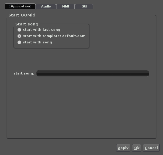 Une piste midi OOM a besoin de l'élément supplémentaire suivant, qui est un ensemble d'instruments MIDI (.idf). Par défaut, une piste midi dans OOM est ouverte avec un ensemble d'instruments et un patch par défaut de la banque GM. Ceux qui sont familiers avec la norme GeneralMidi vont rapidement reconnaître les patchs.