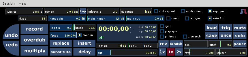 Restaure la boucle en cours de lecture à son état précédent la dernière opération. La lecture en cours n'est pas interrompue, et la tête de lecture reprend là ou elle était, mais dans la version précédente de la boucle (si elle existait). Vous pouvez revenir revenir en arrière de version en version jusqu'à la plus ancienne version encore intacte en mémoire. Plus d'opérations sont effectuée, plus la mémoire totale est utilisée et le système commencera à supprimer les versions les plus anciennes.