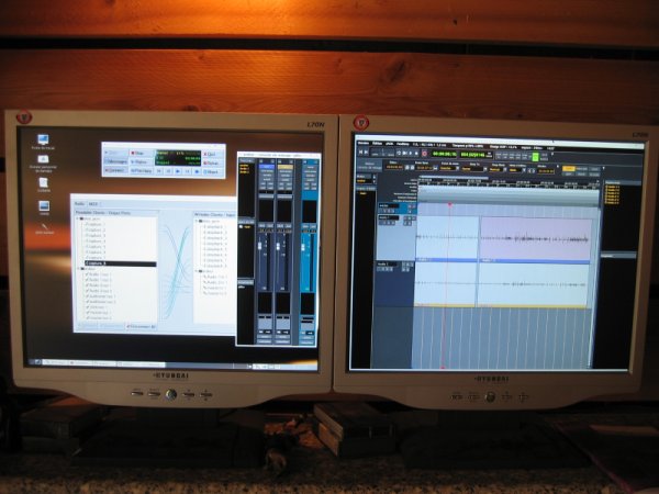 Le studio a commencé à fonctionner autour d'une architecture software et hardware basé sur Windows. Mais Musiques Tangentes dont toute l'administration est déjà sous GNU/linux, a décidé d'installer une solution d'enregistrement musical sous GNU/Linux dans le studio Bamako en complément de la solution existante. Il s'agit de la première phase de la mise en place d'une informatique musicale sous Linux à Musiques Tangentes.