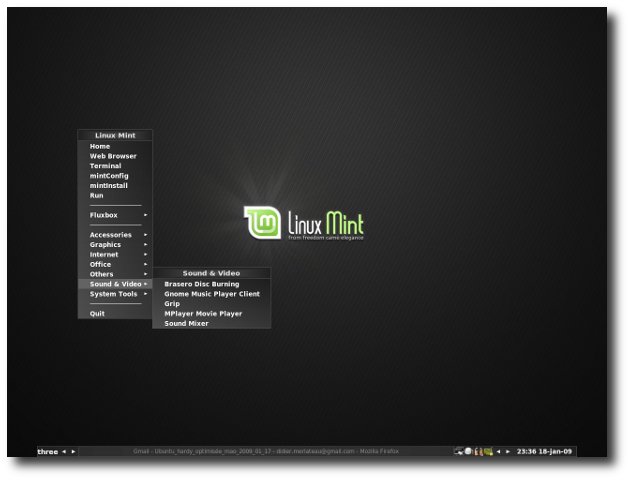 Plusieurs distributions utilisant les mêmes dépôts peuvent convenir (64 Studio 3.0, Apodio33, Edubuntu, Ubuntu, Kubuntu, Open Artist, Xubuntu en Live CD, Ubuntu Studio....) à condition qu'elle soit basée sur Hardy Heron. J'ai choisi Mint 5 Fluxbox disponible ici : http://www.linuxmint.com/download.php car elle est très légère pour être installée sur un ordinateur relativement ancien et permet donc d'installer ce que l'on veut pas à pas. De plus, l'environnement est bien configuré. Veillez à bien prendre la version 5, les version 6 et 7 sont basés respectivement à partir d'Ubuntu Intrepid Ubex 8.10 et Jaunty Jackalope 9.04, ils ne conviennent pas dans ce tuto.