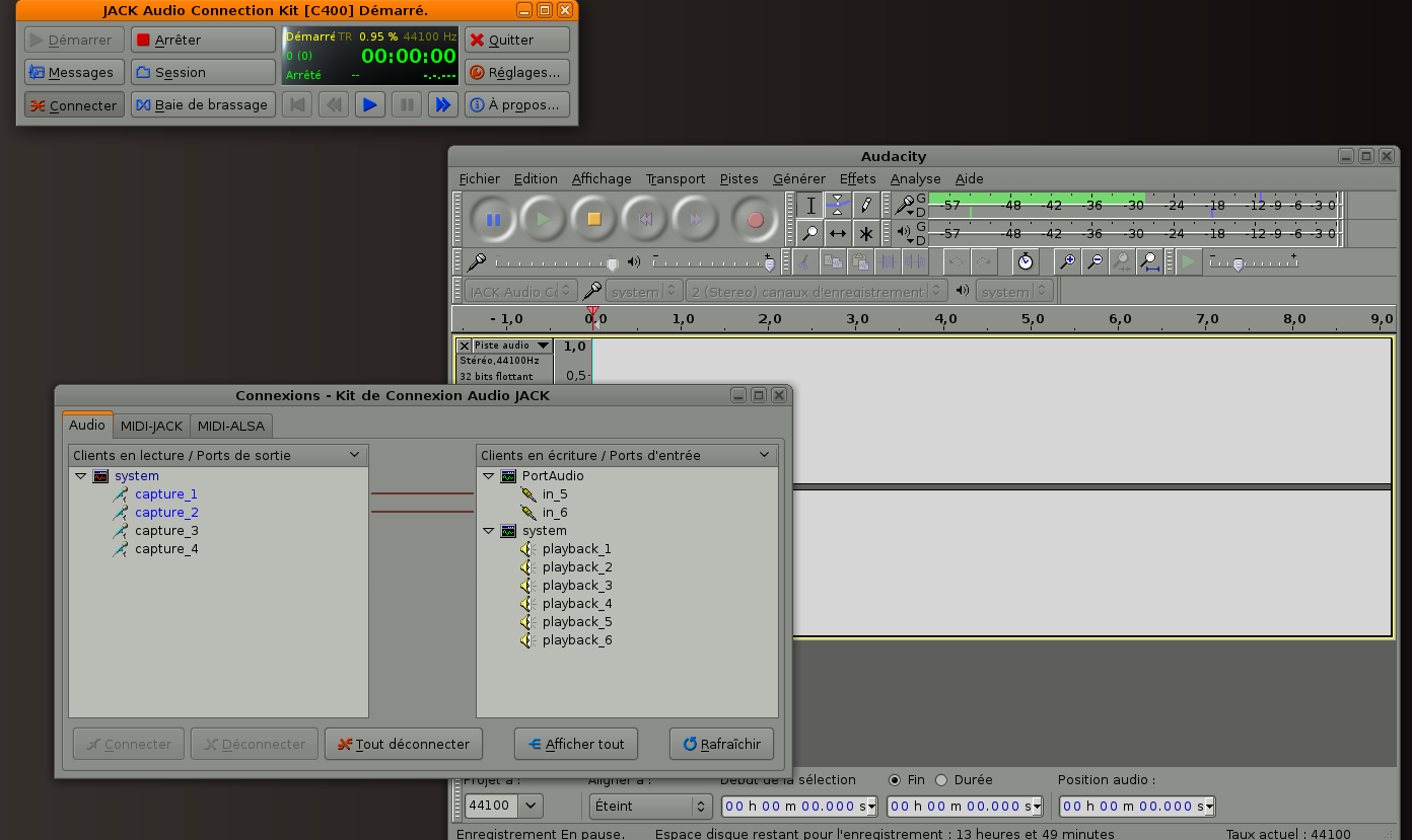 Audacity sait s'interfacer avec jackd.